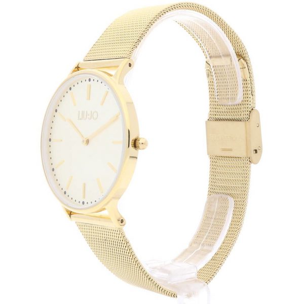 Orologio donna liu-jo, tlj970, collezione luxury moonlight, novita’ 2015, movimento al quarzo solo tempo, cassa in acciao 36mm colore gold, bracciale in acciao colore gold maglia milanese mesh, quadrante sunray con logo liu jo, w.r. 3 atm.
