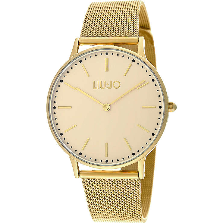 Orologio donna liu-jo, tlj970, collezione luxury moonlight, novita’ 2015, movimento al quarzo solo tempo, cassa in acciao 36mm colore gold, bracciale in acciao colore gold maglia milanese mesh, quadrante sunray con logo liu jo, w.r. 3 atm.